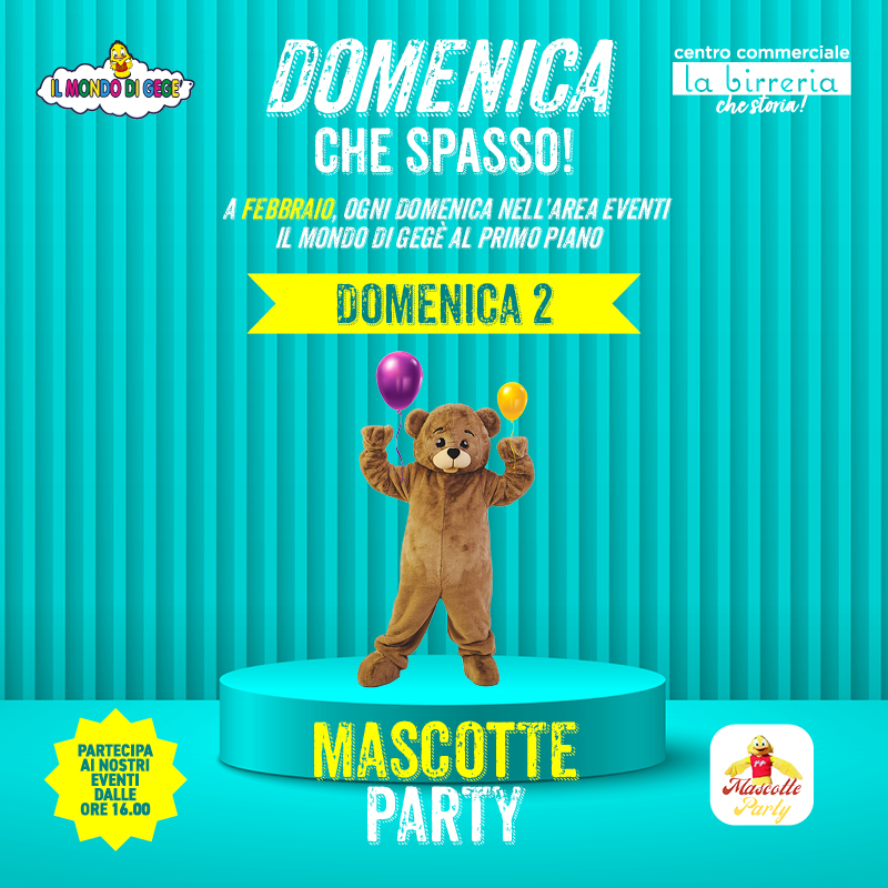 Prendi carta e penna: il 2 febbraio, dalle 16:00, Il Mondo Di Gegè ti aspetta presso l’area eventi al primo piano per un fantastico Mascotte Party!