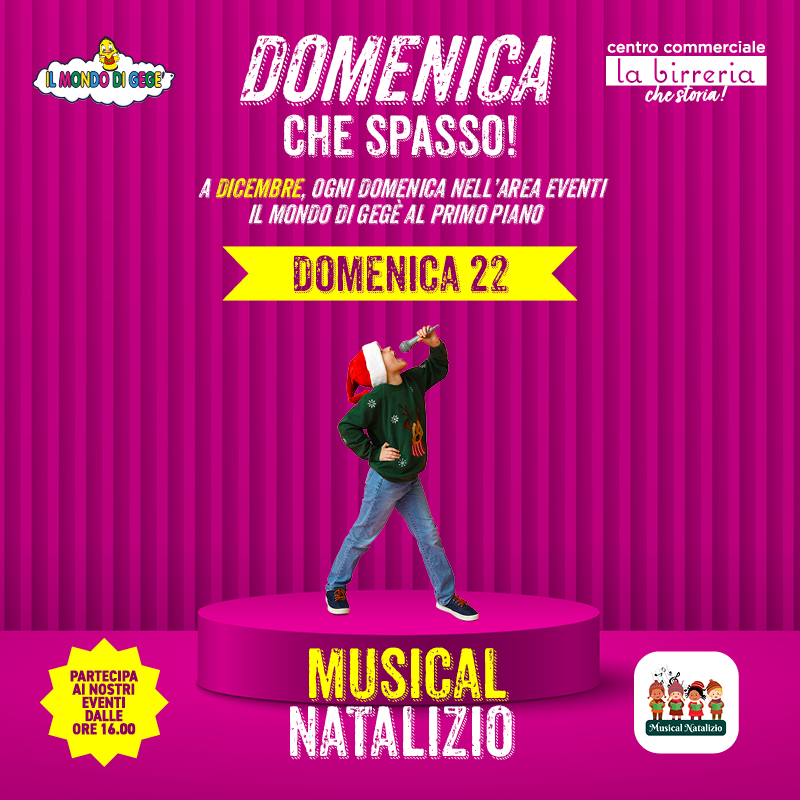 Domenica 22 dicembre, non perderti il Musical Natalizio in collaborazione con Il Mondo di Gegè! Un evento speciale per tutta la famiglia, con spettacoli, canzoni e tanto divertimento! 🎭🎤